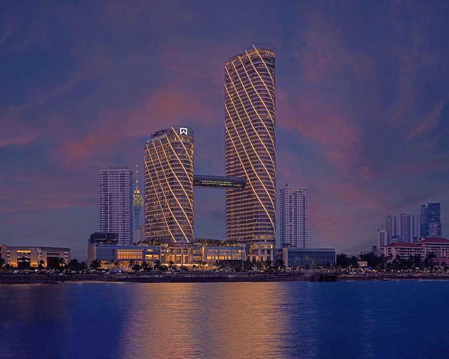 This waterfront luxury development includes Colombo’s tallest residential tower connected by a sky bridge to a 29-story hotel.