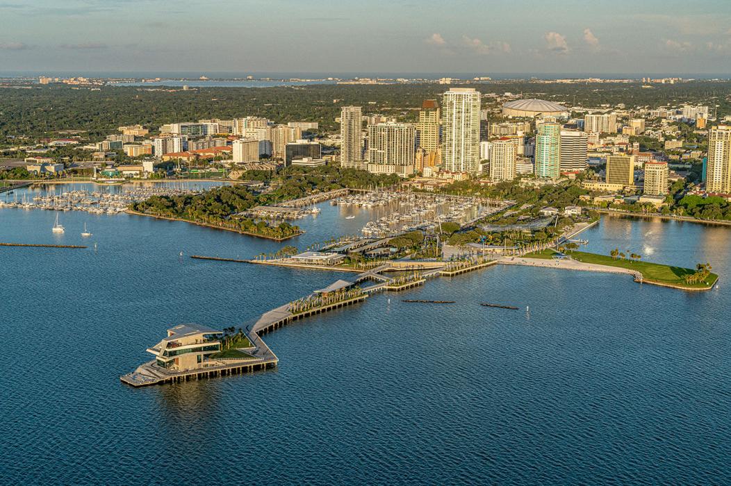 The St. Pete Pier has been a landmark for the city of St. Petersburg since the late 1800’s. Over the ensuing years the historic pier became too costly for the city to upkeep, necessitating a new pier. After a decade of design development, the aging icon was replaced with a revitalized pier and park, reconnecting the pier to the daily life of the city and its transportation systems.