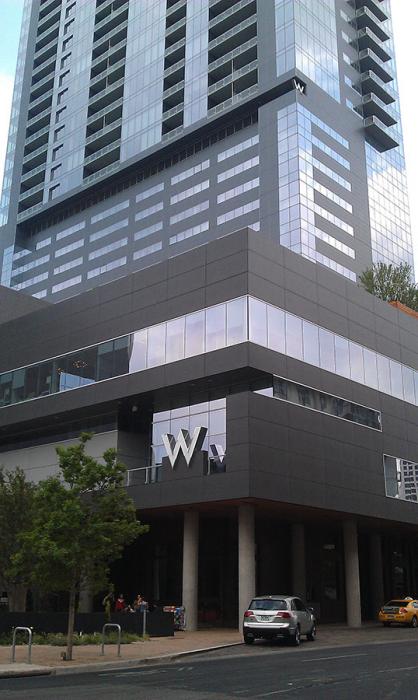 - The building’s podium houses retail space, office space, restaurants and three levels of below-grade parking. An amenity level with pools for the hotel and the condominium tower is located above the podium.